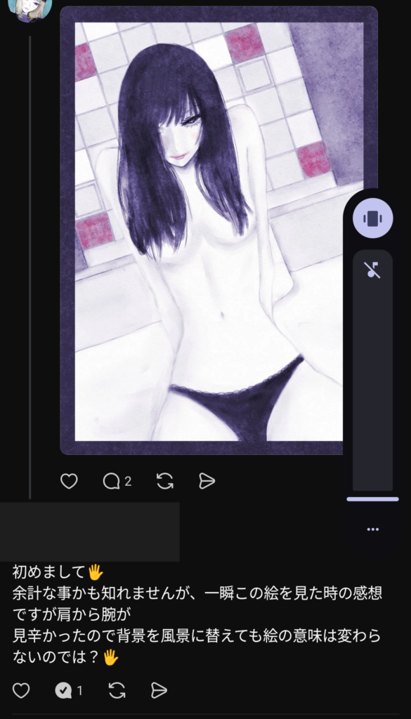 少し前まではXでよく自作のイラストを載せていましたが、あまりにも反応が薄い為、新天地を求めインスタグラムをメインで活動するようになりました。インスタグラムは本来写真(画像)を載せる場所なのであまり言葉のやり取りをするのには向いていません。