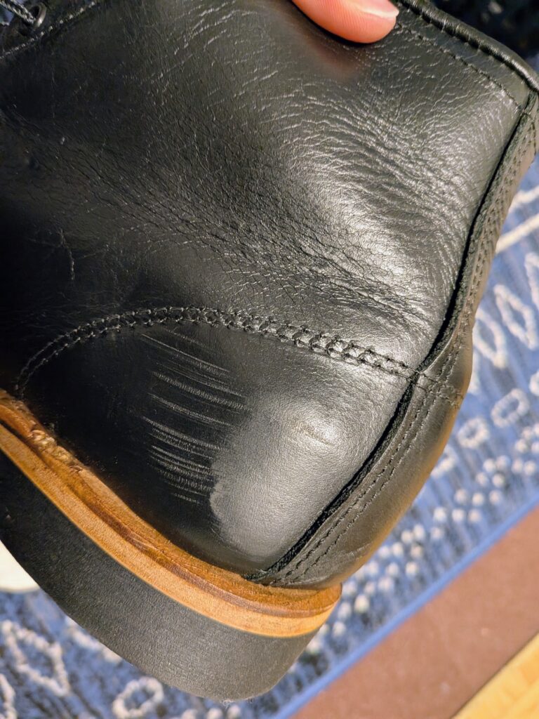かかと側はこんな感じです。あまりに深い傷は消えませんが(多分買った時から付いてた)